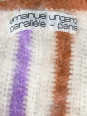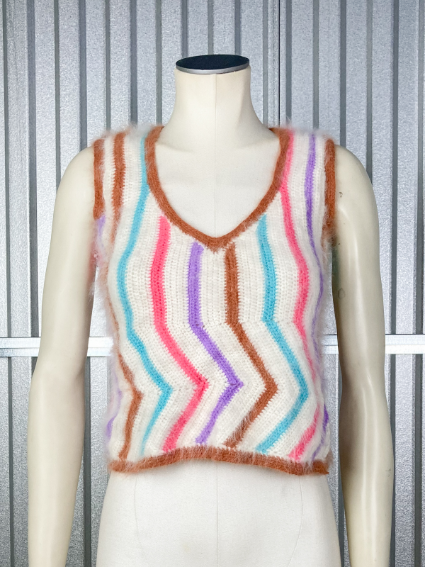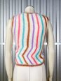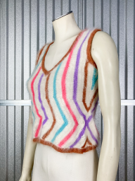Top mohair sans manches rayé, violet, turquoise, rose, beige sur fond blanc